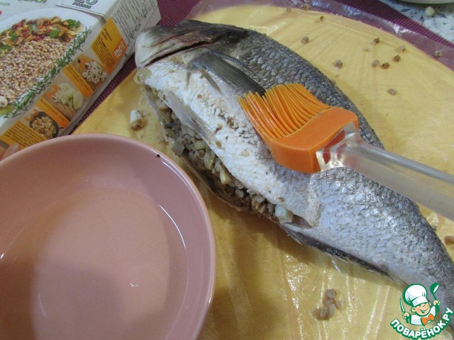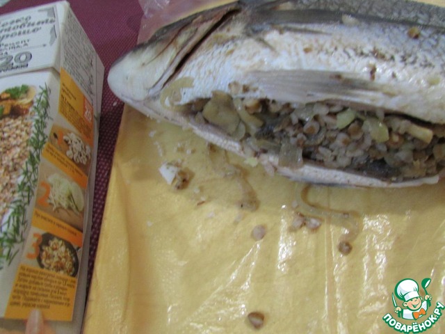 Рецепт «Дорада, фаршированная гречкой с щавелевым соусом»: