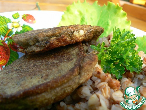 Сверху положить еще немного печеночного теста и жарить с двух сторон по 3 минуты. Очень вкусно и красиво подавать на листиках салата с петрушкой. Приятного аппетита!
