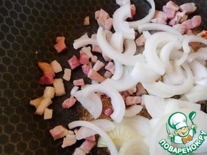 Сало нарезать мелким кубиком и отправить на сковороду обжариваться на среднем огне (я дополнительно не солила, так как сало брала соленое).