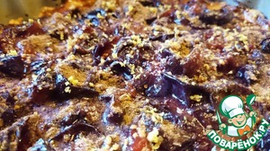 Затем форма вынимается из духовки, дно и бортики теста смазываются смесью джема с коньяком, сливы выкладываются на тесто, посыпаются корицей и цедрой лимона, а противень возвращается в духовку на полчаса при температуре 180 градусов. -