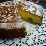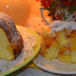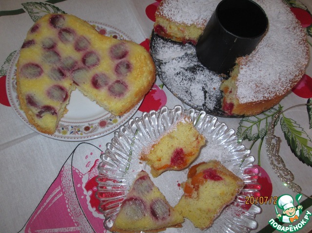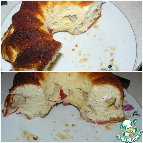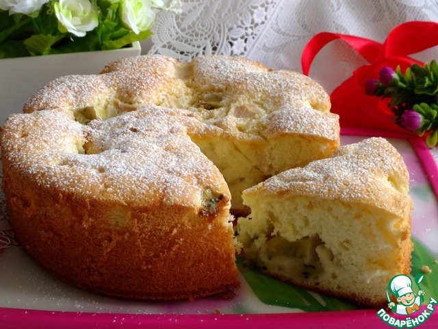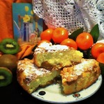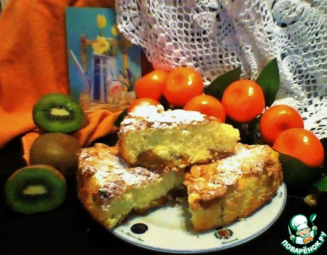 Рецепт «Бисквитный пирог с персиками и киви»: