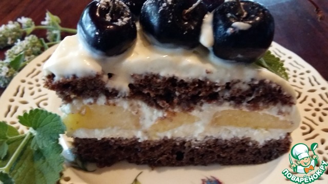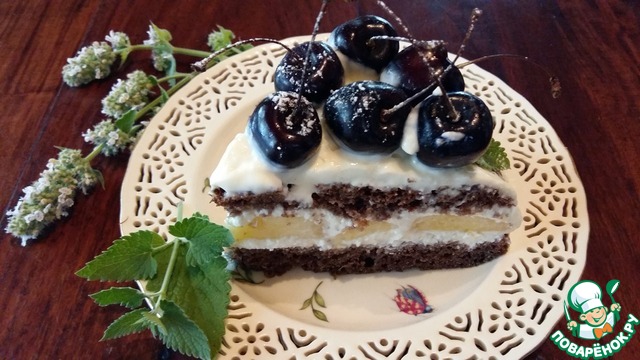 Коржи, с добавлением черемуховой муки получаются достаточно нежными и, благодаря сочным фруктам и мягкому крему, не нуждаются в дополнительной пропитке.