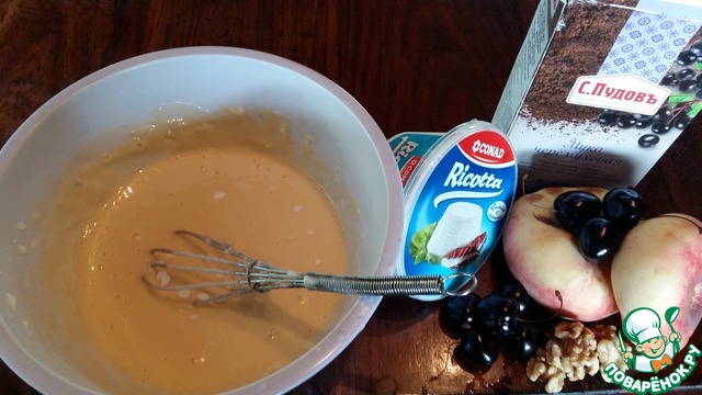 Из творога, рикотты и сахарной пудры приготовить крем.