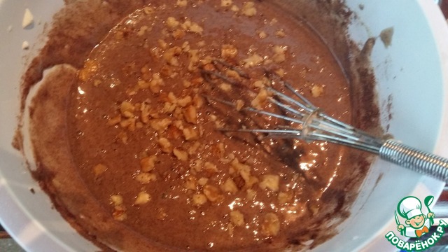 2 горсточки грецких орехов измельчить и тоже добавить в тесто.