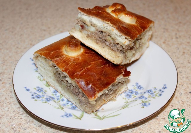 Рецепт «Пирог луково-мясной "Шнуровка"»: