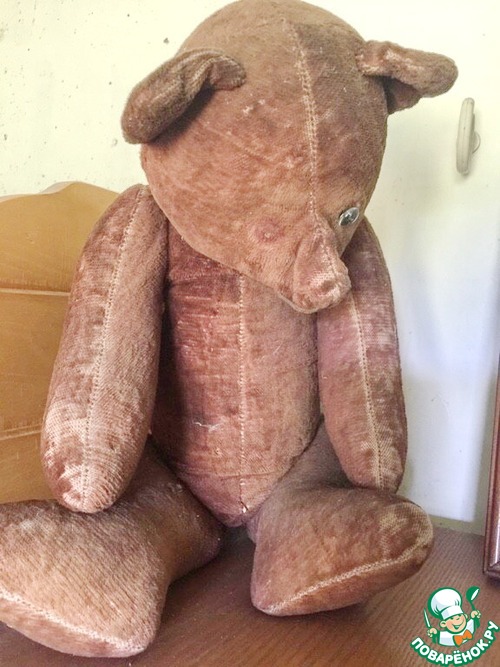 А вы тоже храните старый хлам на даче? Этого мишку я нашла на даче родителей мужа. Хотя назвать его хламом язык не поворачивается, ему... более 60 лет, он был куплен ещё до свадьбы родителей мужа.