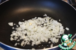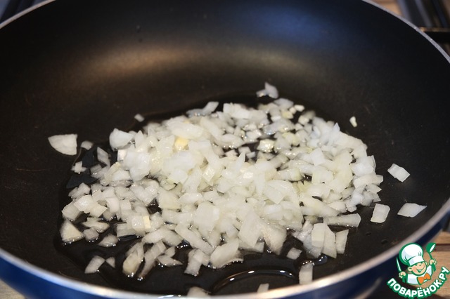На сковороду добавить 4 ст. ложки растительного масла (если фарш у вас жирный, то количество масла можно уменьшить). Пассеровать лук до золотистой корочки.
