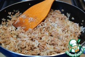 Добавить к луку фарш. Посолить, поперчить по вкусу, добавить паприку, тушить на медленном огне.