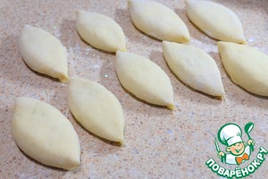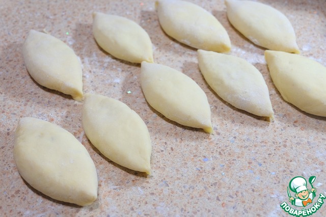 Нет, на весах не взвешиваю. Отрезаю от теста кусок, раскатываю колбаску и отрезаю кусочки примерно равной величины, а затем маленькой скалачкой раскатываю кружочек-сочень и выкладываю начинку.
