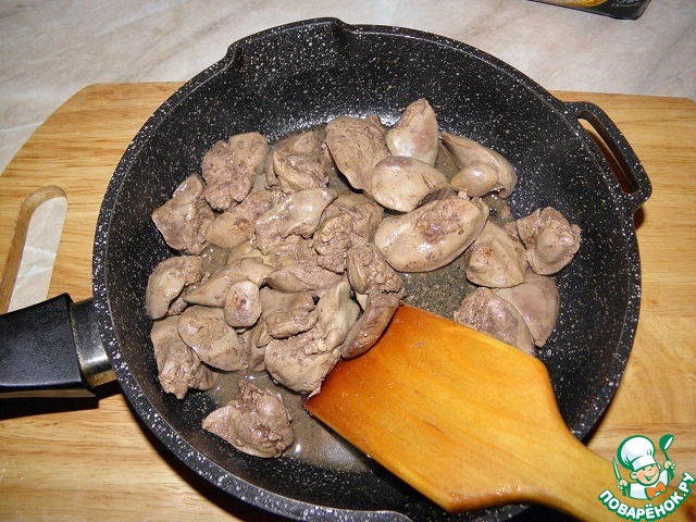 Печень очистить, промыть, обсушить, обжарить с двух сторон по 1 минуте