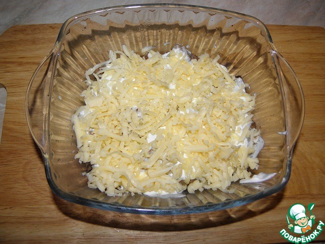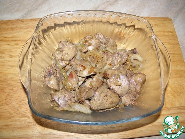 Переложить печень с луком в формы (можно порционные, можно в одну)