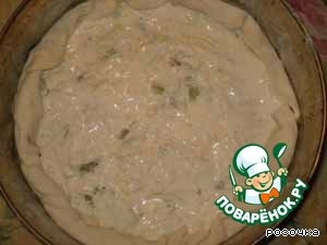• Заливаем полученной смесью нашу капусту, поправляем бортики и отправляем в духовку на 45 минут.