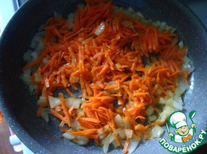 Лук и морковь обжариваем в оливковом масле до полной готовности.
