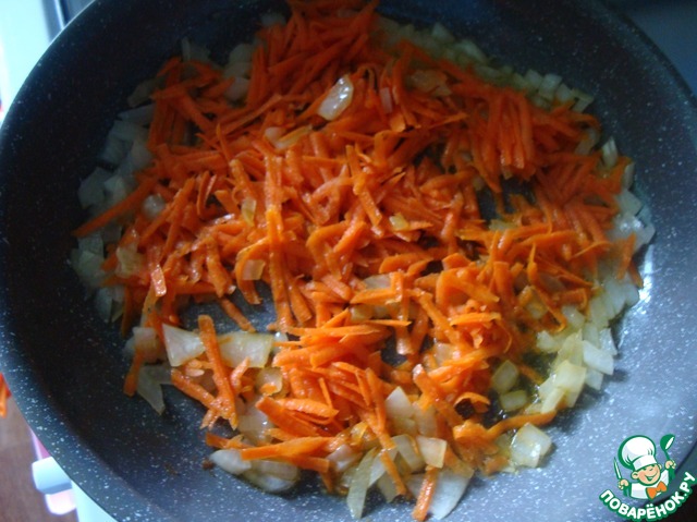Выкладываем лук с морковью.