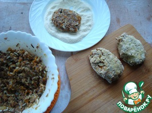 В тарелку выкладываем манку для панировки котлет.