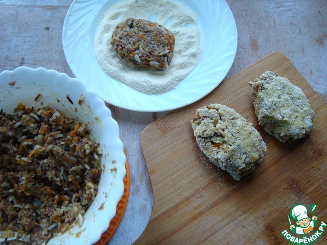 Формируем котлеты и обваливаем их в манке.