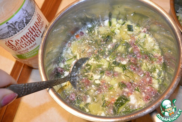 Рецепт «Окрошка с колбасой и соусом песто»:
