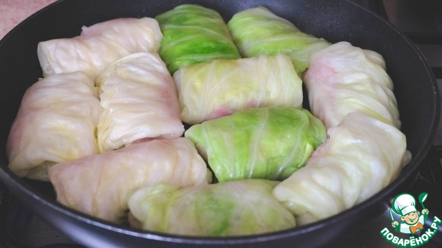 Затем выложить голубцы, накрыть крышкой, убавить огонь до минимума, тушить несколько минут (10-15 мин.)