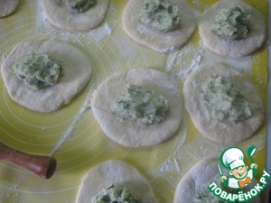 Припыляем поверхность стола мукой, делим тесто на равные части (у меня получилось 10). Раскатываем каждый кусочек толщиной 0.5 см.