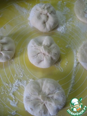 Переворачиваем полученный "колобок" швом вниз, ладонью чуть прижимаем сверху.