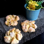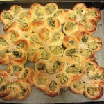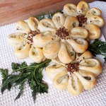 Всё очень-очень просто! Снизу я листочки не залепляла, лепесточки вывернула, расправила, пекла на пергаменте, присыпанным мукой. Начинка держалась отлично.