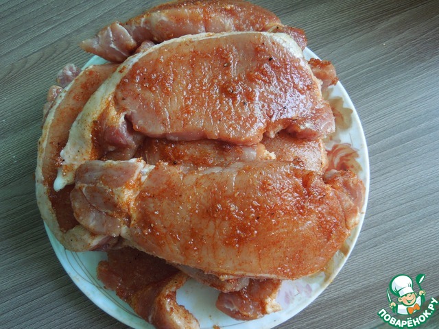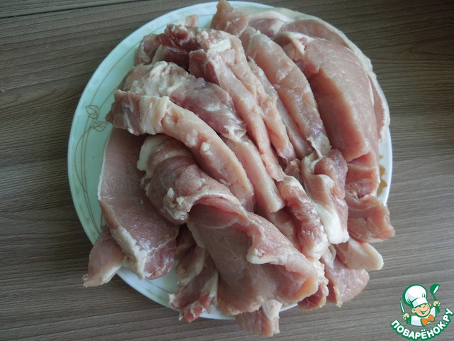 • Мясо нарезать на куски толщиной около 2 см. У меня получилось 11 кусков.