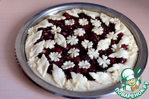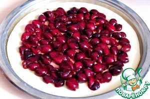Выложить ягоды черешни на тесто, разровнять, отступив от края 1,5 - 2 см.