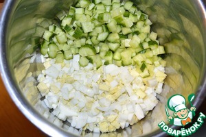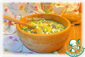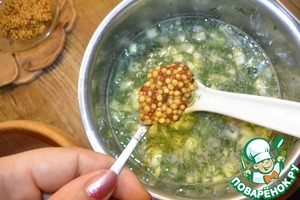 Рецепт «Окрошка с печенью и зерновой горчицей»: