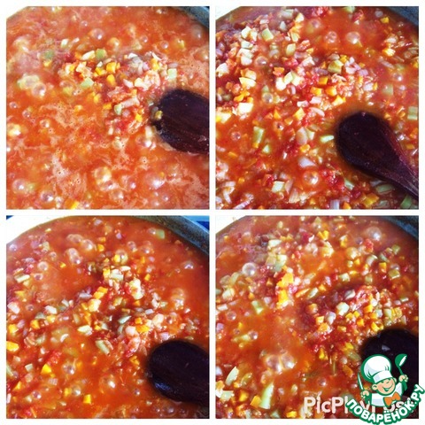 Подливу увариваем до испарения жидкости, помешивая, чтобы овощи не подгорели. После закипания, у меня на это ушло минут 40.