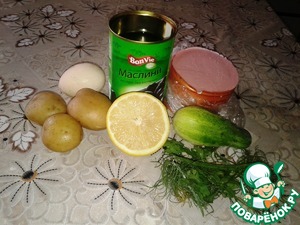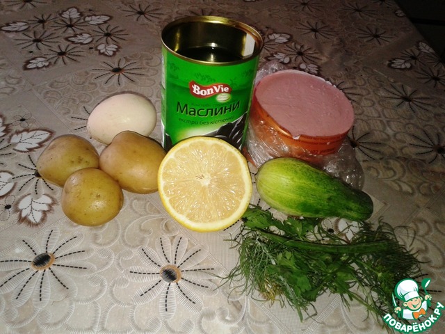 Нарезать мелкими кубиками колбасу, картофель и огурцы. Измельчить яйца.