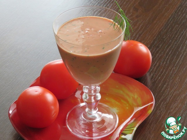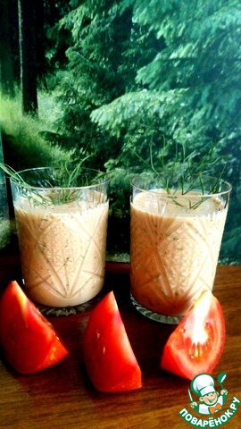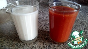Для коктейля "Трубадур" берём стакан простокваши, стакан томатного сока,