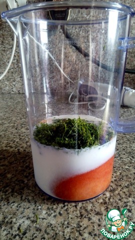 Наливаем, насыпаем в стакан блендера, добавляем специи по вкусу, взбиваем.