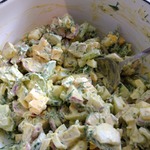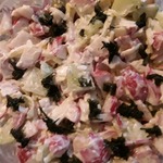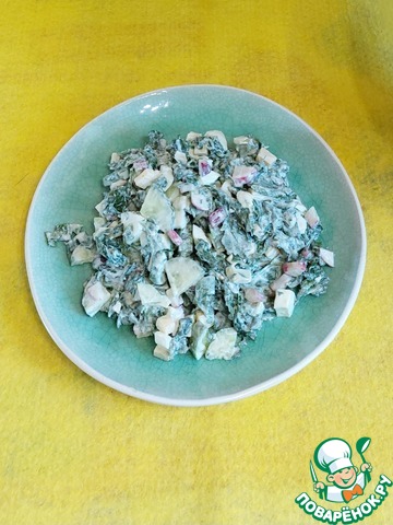Все перемешать, немного посолить, приправить перцем и заправить майонезом со сметаной.