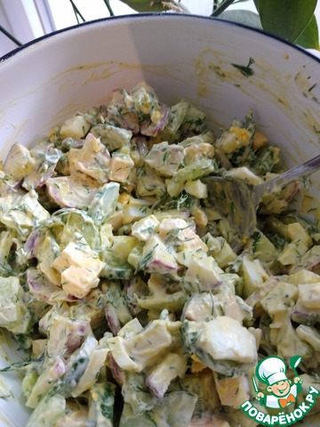 Рецепт «Салат из редиса, огурцов и сыра»: