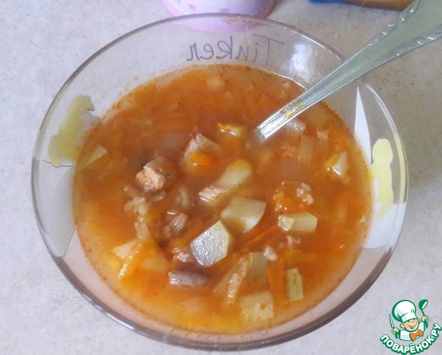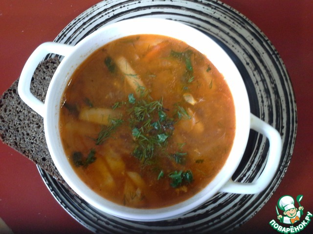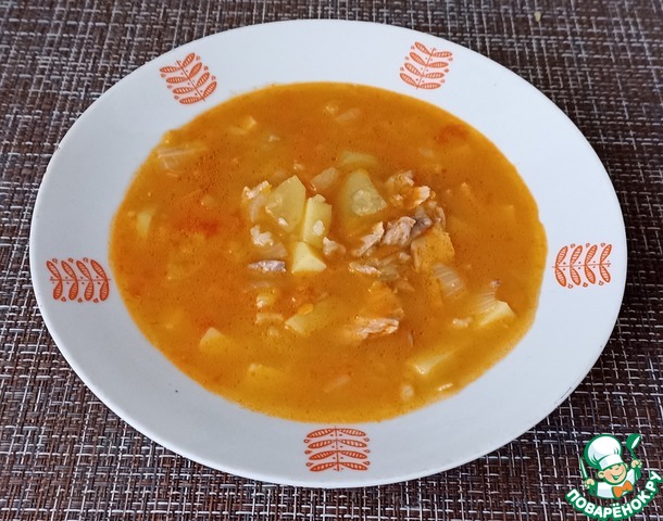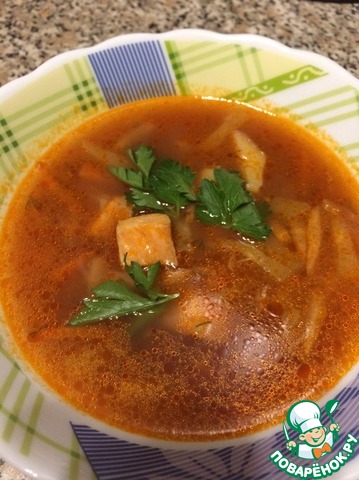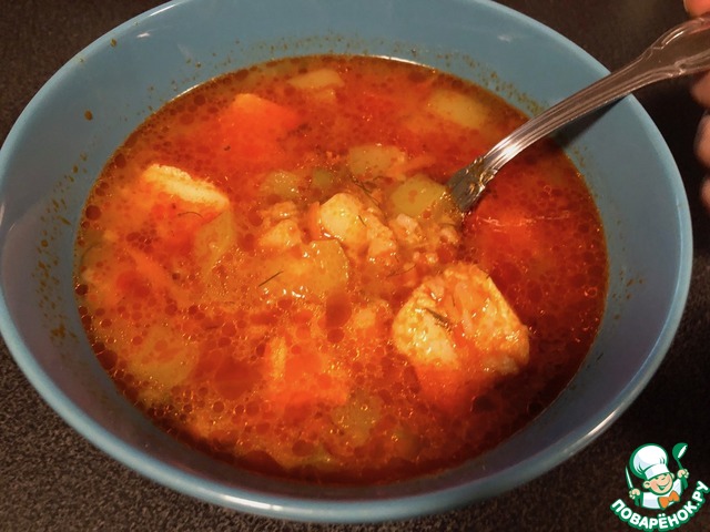 Вообще-то, я увидела этот суп в интернете под названием "Уха "Красно солнышко"". С названием согласна, но вот то, что это не уха, сомнений не вызывает! Конечно, это рыбный суп. Но, какой же он вкусный!!! Моя младшая внучка, которой 4 года, была от него в полнейшем восторге. Ела его три дня подряд и каждый раз вопила: "О! Это мой любимый суп!!!" Причем буквально съедала до капельки, даже выпивала из тарелки все остатки. И даже требовала его на ужин. Такое случается не часто. Нам с мужем суп тоже очень понравился. А еще он очень просто и быстро готовится!