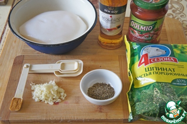 Ингредиенты для «Кальмары в томатно-шпинатном соусе»: