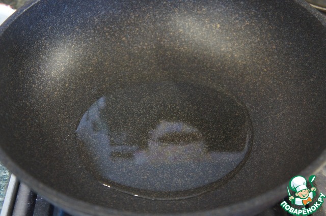 В глубокую сковороду, а лучше в вок влить 2-3 ст. л. растительного масла,