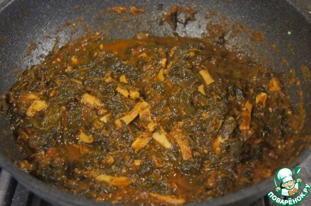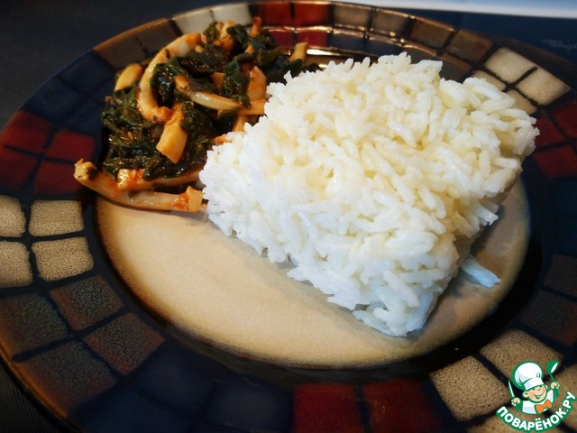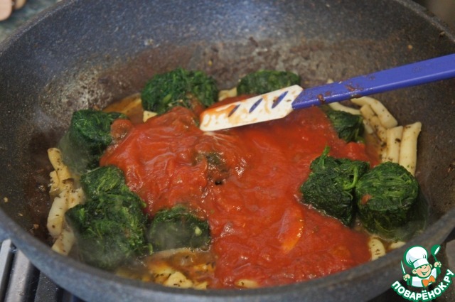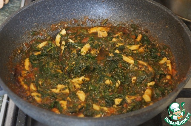 Рецепт «Кальмары в томатно-шпинатном соусе»: