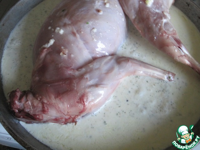 Заливаем кролика и запекаем с закрытой крышкой 1 час при 200*