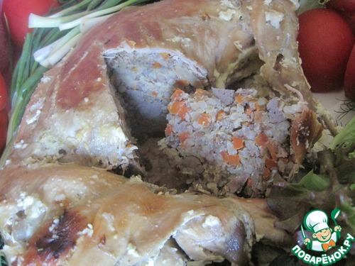 Фаршированный кролик, запеченный в сметанном соусе, который придает мясу нежный и сливочный вкус - идеальный вариант. Такой рецепт приготовления кролика в духовке хорош тем, что вместе с мясом запекается и гарнир, обилие овощей делает это блюдо сладким и безумно вкусным, а еще каким-то «летним».