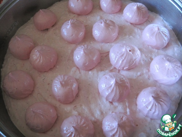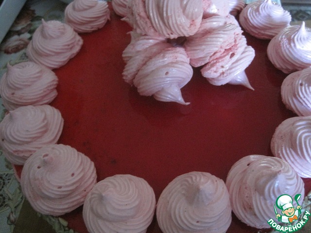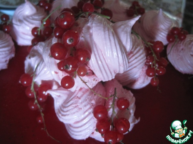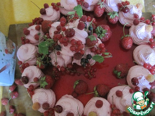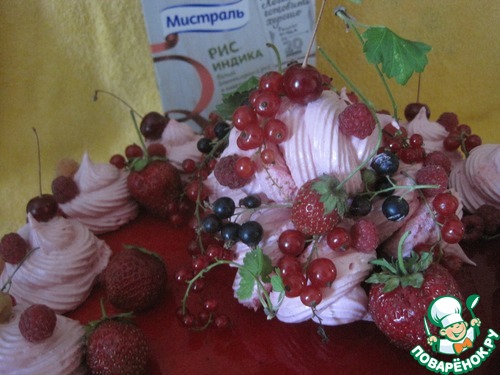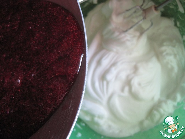 Белки взбиваем и вливаем горячий уваренный сироп из клубники.