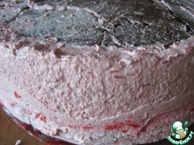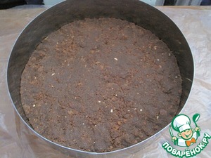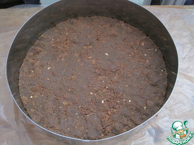 Выкладываем в 2 формы диаметром 28 см, слой бисквита, травим в холодильник.