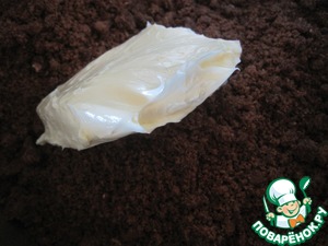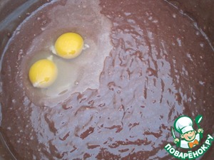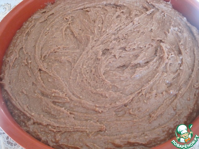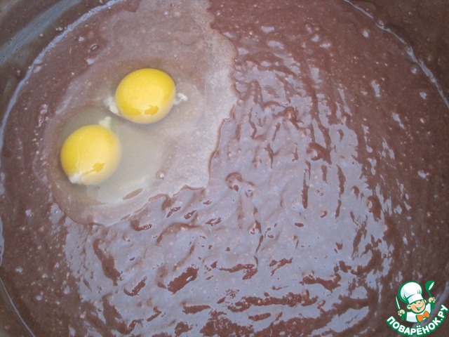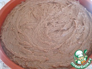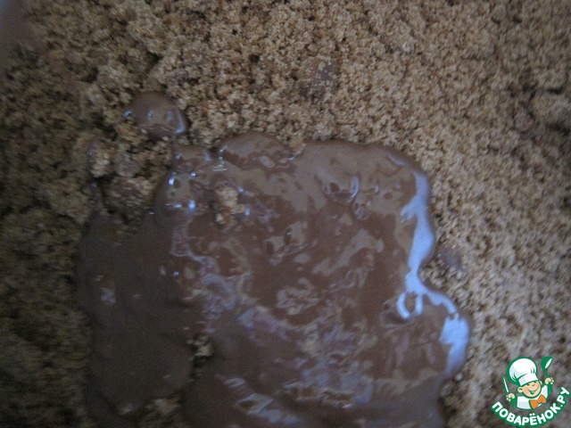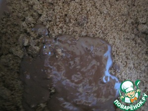 Для восстановления бисквита вливаем растопленный шоколад, перемешиваем.