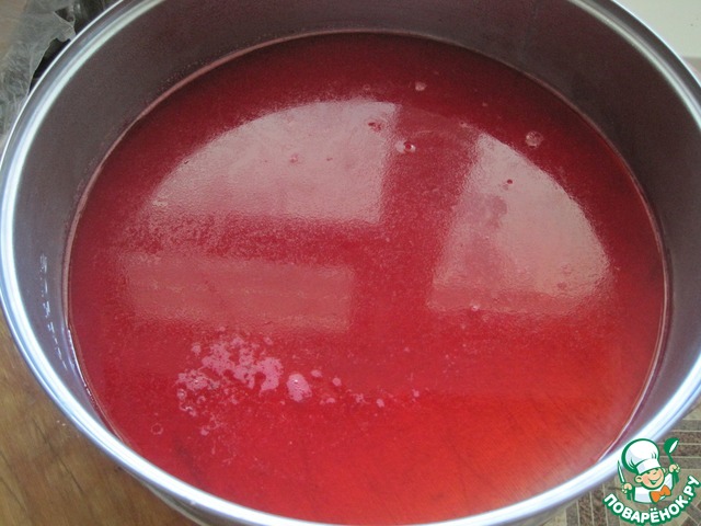 Выжимаем сок из смородины, растворяем сахар, добавляем замоченный и растворенный желатин. -