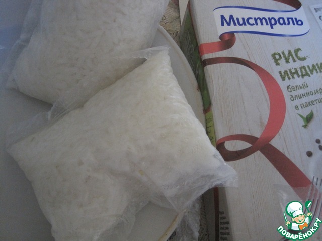 - Рис (ТМ Мистраль(ИНДИКА белый длиннозерный рис в пакетиках)) — 2 пакет.