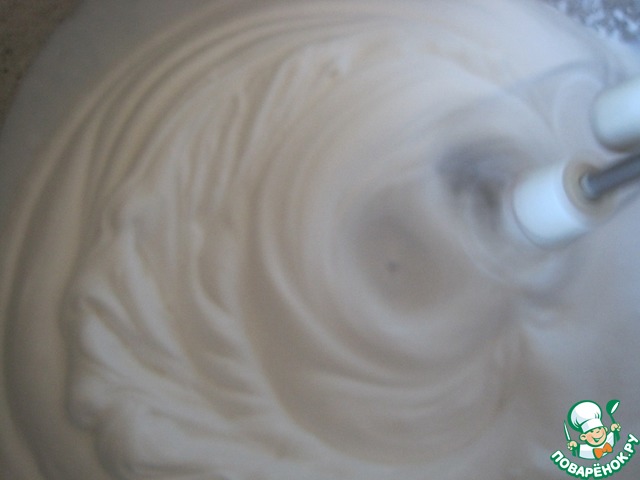 Вливаем растворенный замоченный желатин и продолжаем взбивать 15 мин.