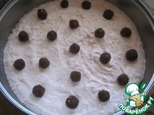 Выкладываем шарики из бисквита на расстоянии 3 см в форму диаметром 32 см и 28 см.