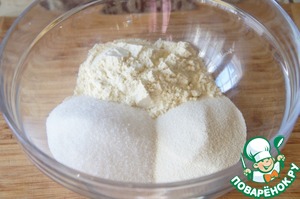 Смешать манную крупу, кукурузную муку и сахар.