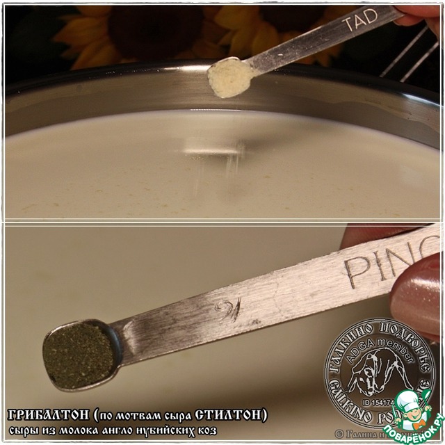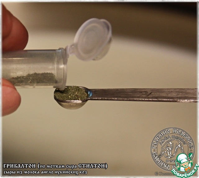 • С помощью тех самых мерных ложечек, отмеряем нужное количество заквасок и прочих, необходимых для приготовления этого сыра ингридиентов.