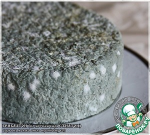 • Грибалтон (Стилтон) внутри себя пронизан вот такими тонкими голубыми прожилками плесени. Это результат деятельности тех самых бактерий Penicillium roqueforti. Именно для этого мы и прокалывали головки сыра для доставки воздуха к сердцевине.